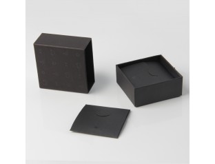 此款首飾包裝盒,采用了常見的開合型翻蓋盒的款式,材質是pu皮包膠胚,商標燙銀。首飾盒包裝整體用黑色作為底色,醒目的銀色LOGO位于盒子中心,黑白搭配,變得更加簡單和樸素首飾盒選用植絨裱EVA內托在保護好產品的同時,也彰顯其高檔大方。