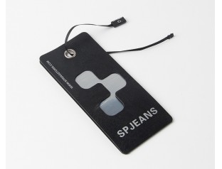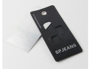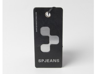 此款品牌吊牌采用黑卡紙對裱,商標燙銀,黑卡紙是特種紙的一種,其表面平整光滑,挺度好,拉力好,耐破度高品牌吊牌設計整體采用黑色作為主打色,搭配醒目的燙銀LOGO,經(jīng)典的黑白搭配,彰顯其品牌價值廣州駿業(yè)包裝廠的吊牌定制,跟進客戶要求免費設計,量身定制,流程機械化與人工結(jié)合打造出中高檔服裝吊牌