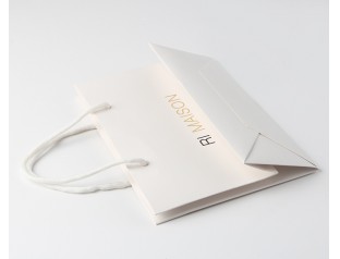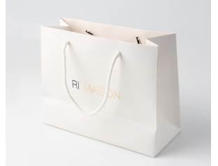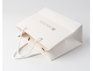此款紙袋制作加工采用了250g銅版紙,商標燙金,過啞膠,提手處用尼龍自扣圓繩手提紙袋制作選用白色作為整體色,醒目燙金的LOGO居中,更彰顯其品牌價值。服裝紙袋制作采用白色尼龍圓繩,與整體紙袋風格統(tǒng)一,想定制此款小清新手提紙袋,歡迎致電廣州駿業(yè)包裝廠